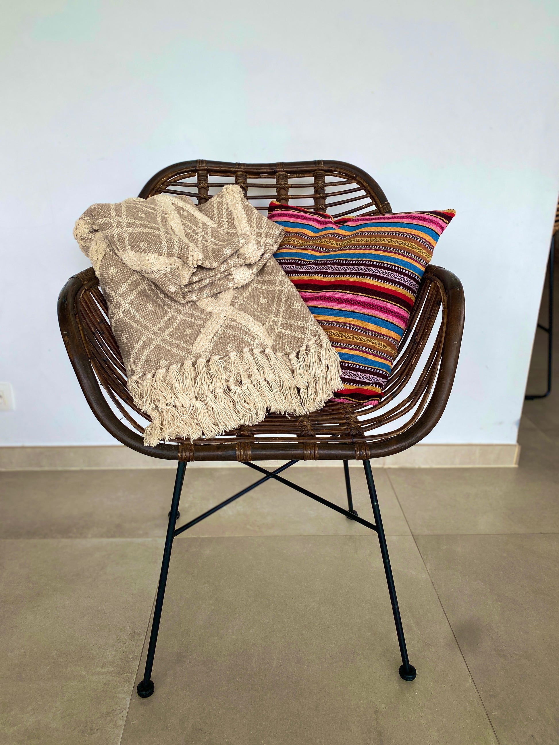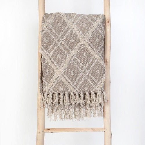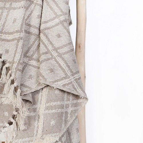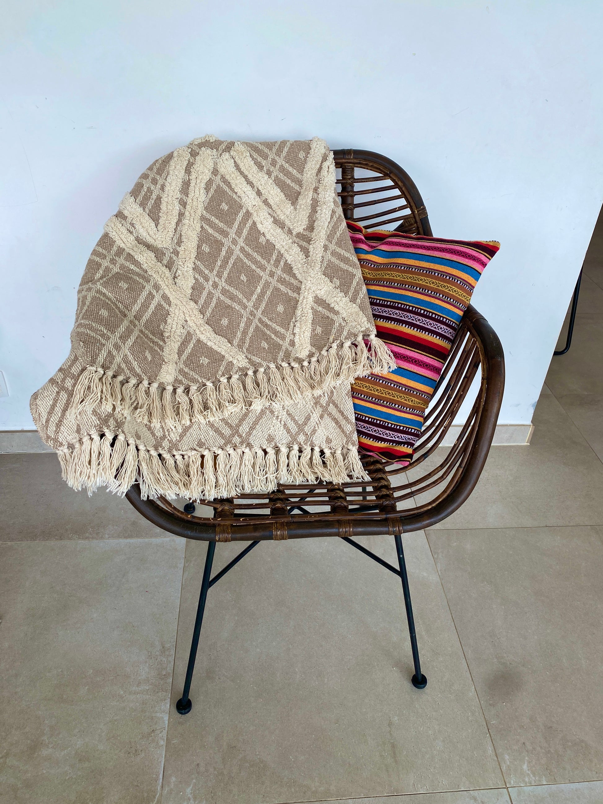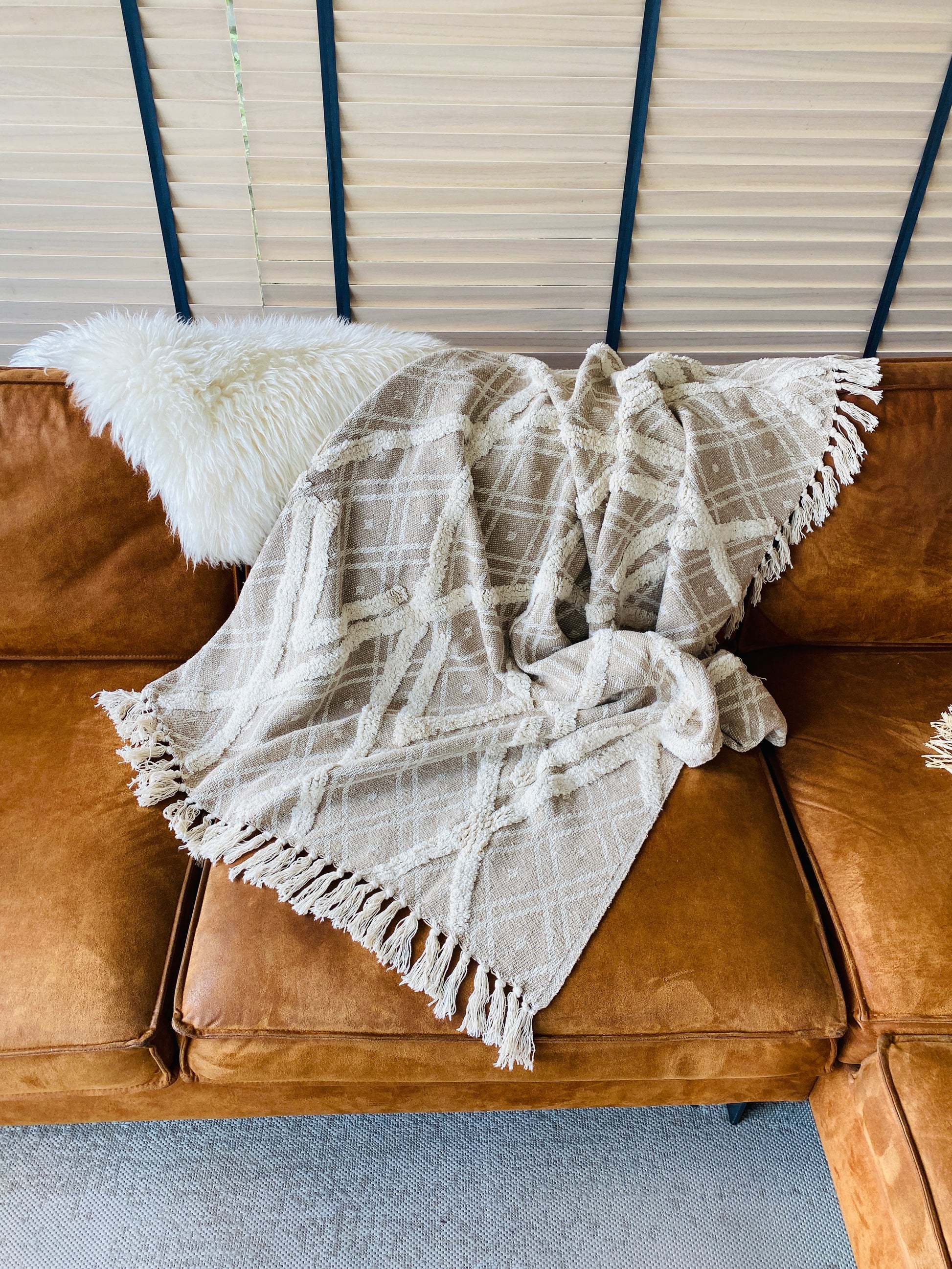 Deze prachtige Boho-chic plaid kan zowel gebruikt worden als "throw", maar ook als cosy dekentje in de zetel. Hij is gemaakt uit 100% katoen en is getuft geweven, waardoor hij extra dik en stevig aanvoelt. Hij heeft twee verschillende zijden met elk een andere Bohemian print.