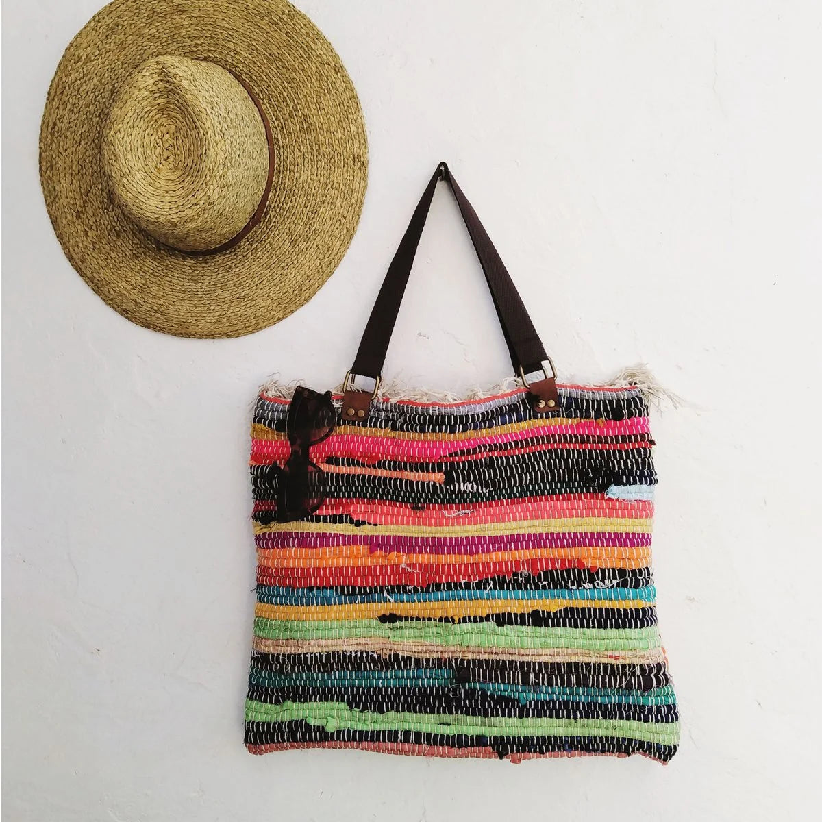 Handgemaakt in Griekenland met gerecyclede katoenen stoffen. Elke tas heeft hierdoor een andere kleurencombinatie en is nooit helemaal gelijk aan de coverfoto!