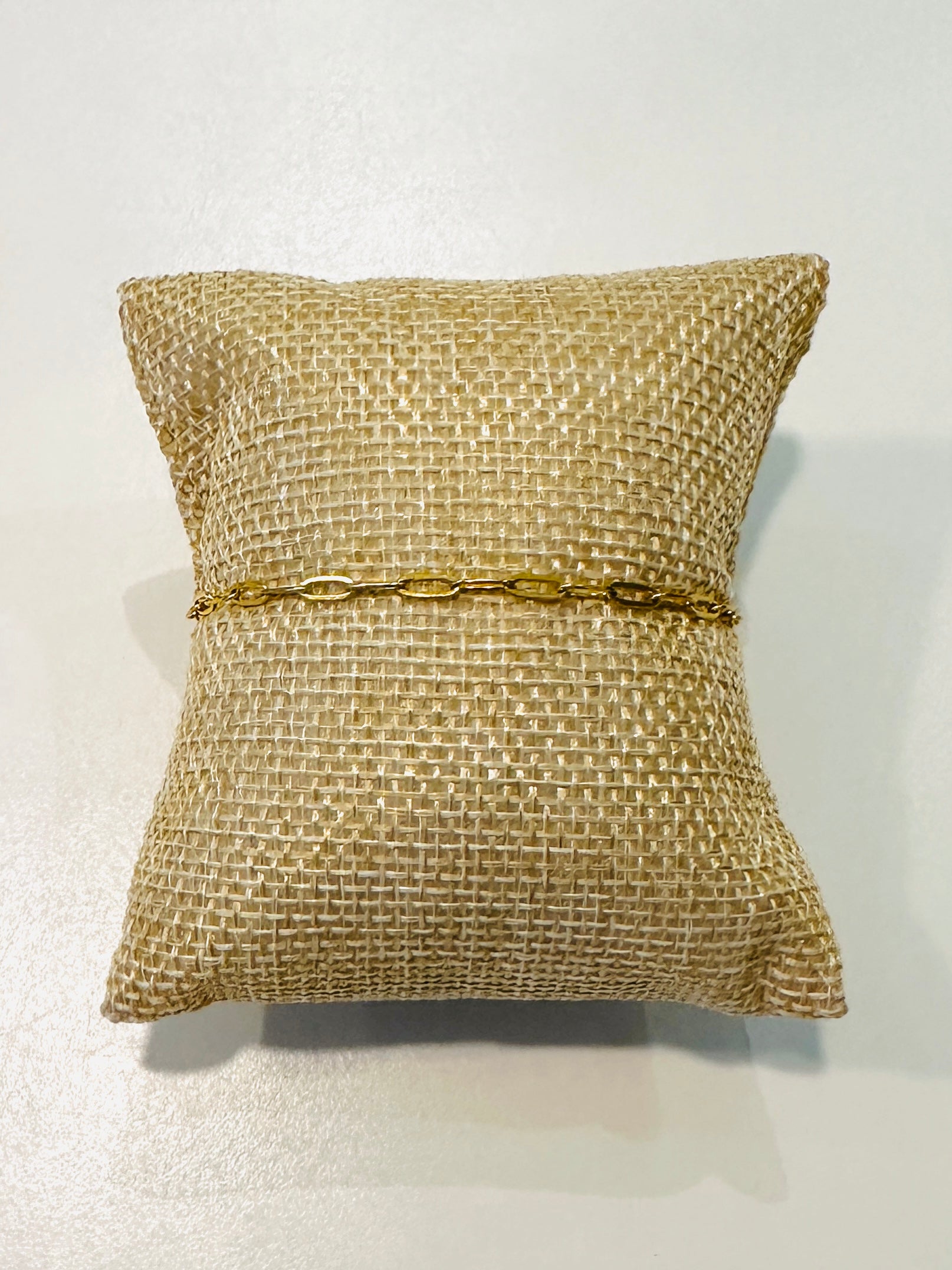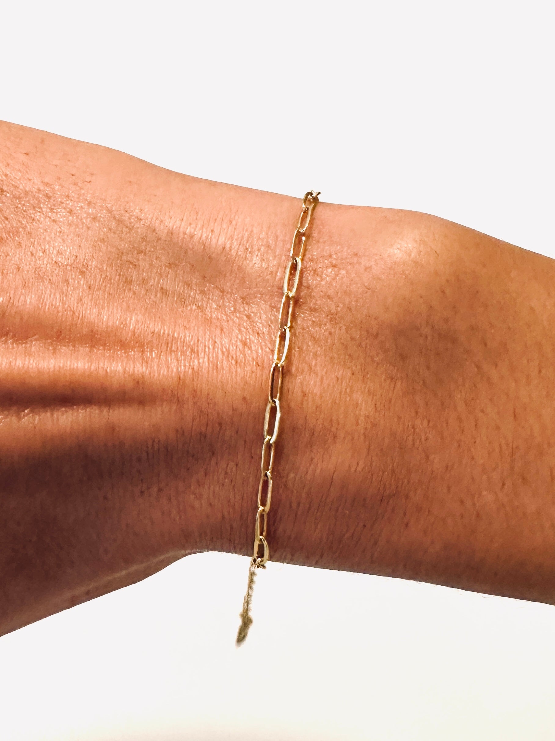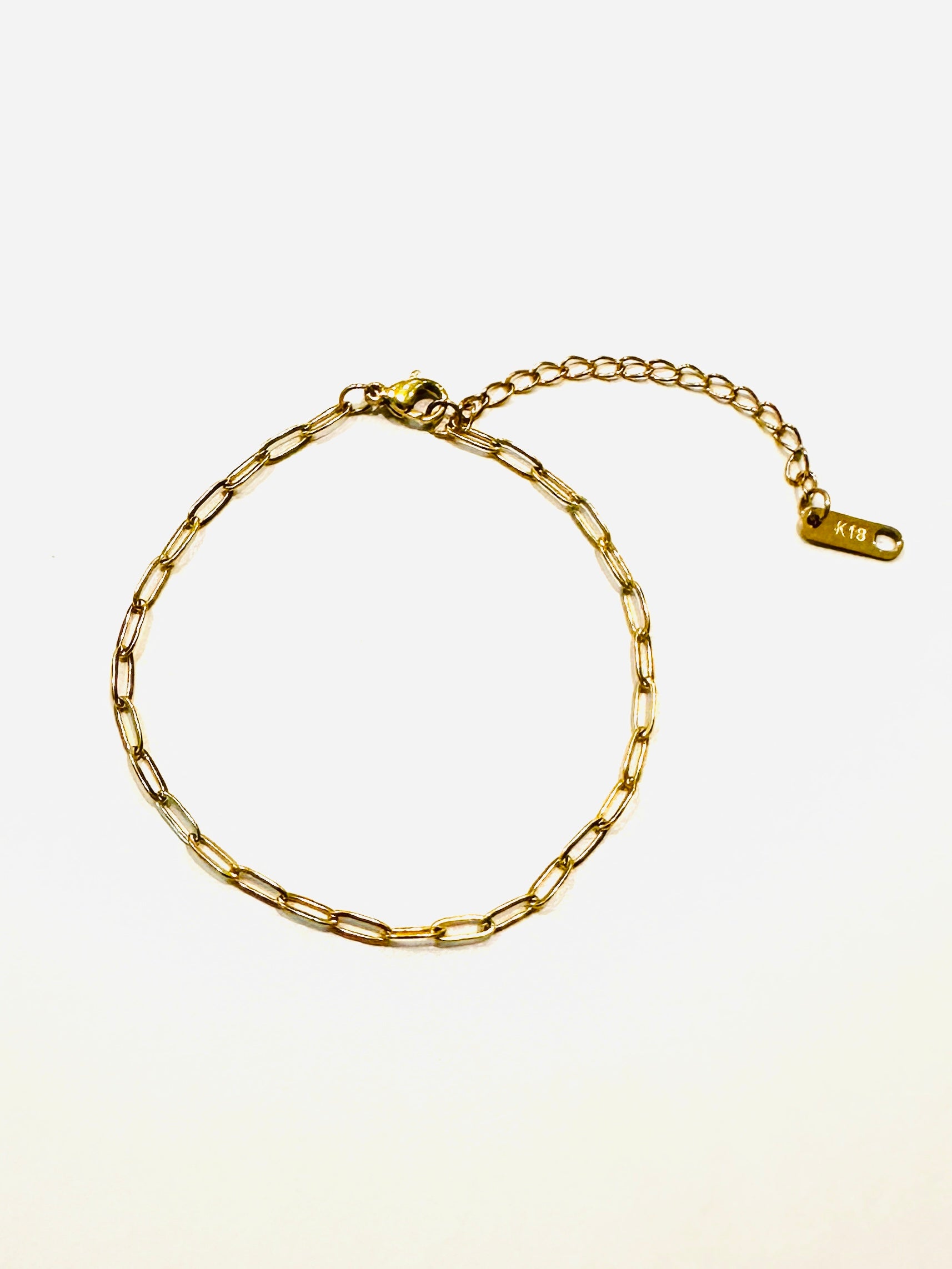 Deze geschakelde armband met kleine schakels van 0,5 cm is gemaakt uit roestvrij staal en is verguld met 18K goud.
